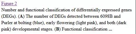 取樣方法:兩個品系的均取抽薹時期與花發(fā)育早期兩個時間點(diǎn)的分枝發(fā)生部位。每個品系每個時期1個樣本(每個個體至少取5個分枝發(fā)生部位,最多6個個體混樣樣本),總共4個樣本,每個樣本分別進(jìn)行mRNA測序與microRNA測序