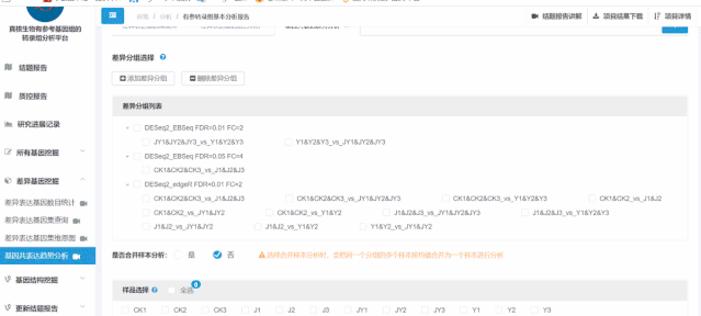 DEseq2軟件適用于有生物學重復的項目,edgeR適用于無生物學重復的項目,選擇第一個,系統(tǒng)會自動識別項目類型選擇對應的軟件