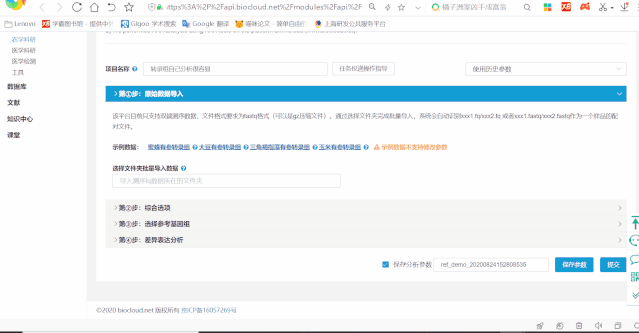 百邁客云包含農學和醫(yī)學兩大類分析平臺,醫(yī)學分析平臺主要針對人、鼠數(shù)據(jù)的分析,包含:轉錄組、非編碼RNA、單基因病外顯子、腫瘤外顯子、重測序等數(shù)據(jù)分析,以及全轉錄組聯(lián)合分析;農學分析平臺可以應用到更多的物種,涵蓋轉錄組、非編碼RNA、微生物、蛋白、代謝等數(shù)據(jù)的分析,以及全轉錄組聯(lián)合分析等。點擊左側導航分析->農學或者醫(yī)學打開分析平臺列表頁面,點擊選擇您想要使用的分析平臺,打開其詳細介紹頁面,該頁面可以看到該平臺的應用領域“平臺介紹“技術背景“案例“課堂“版本記錄,點擊打開軟件即可進入到參數(shù)頁面。