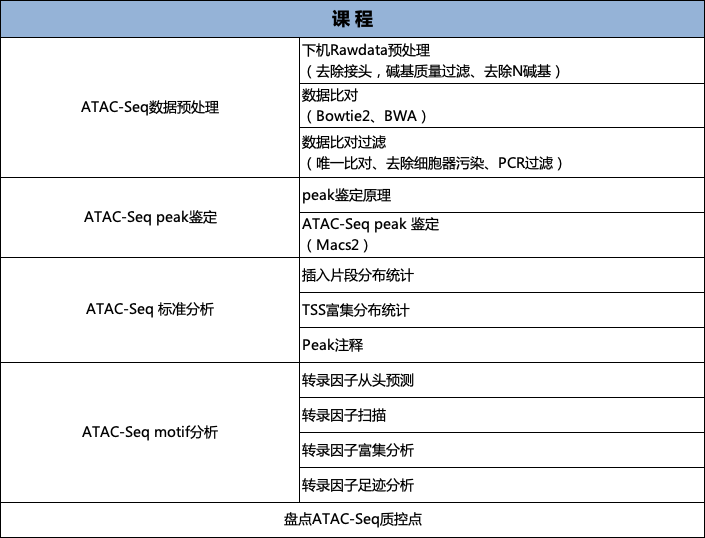 本課程主要從技術原理、實驗步驟、生物信息學分析、文獻分享四大內容向大家介紹ATAC-Seq技術。同時,本課程還涉及專門的生物信息學實操課程,帶領大家學習ATAC-Seq基本分析流程,其中包括數(shù)據(jù)質控、Peak Calling、Motif分析等。從而幫助大家將ATAC-Seq運用在自己的課題當中。