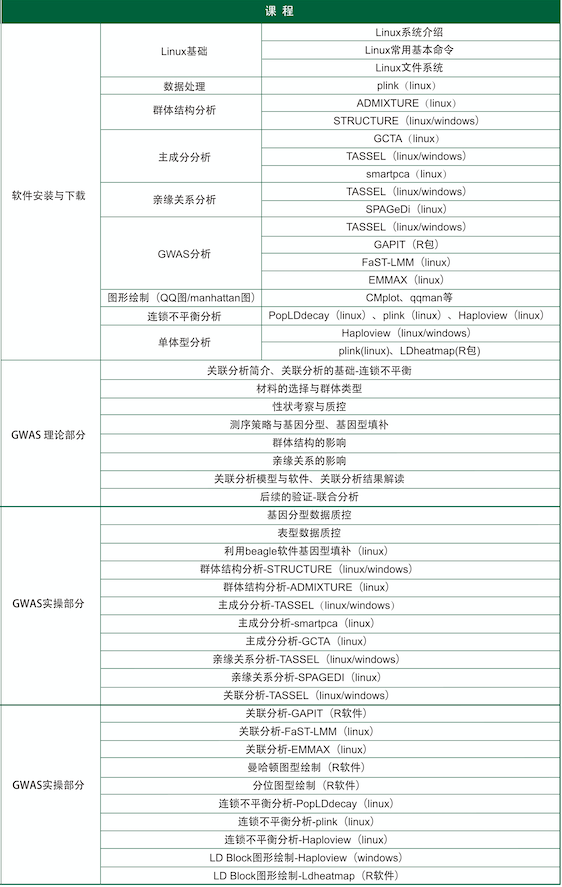 3、群體類課程:GWAS+遺傳進化課程+重測序分析課程(可組合:零基礎R語言繪圖+生信入門+比較基因組+基因家族分析課程)